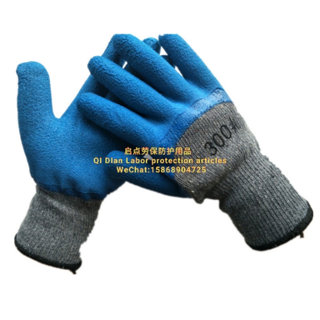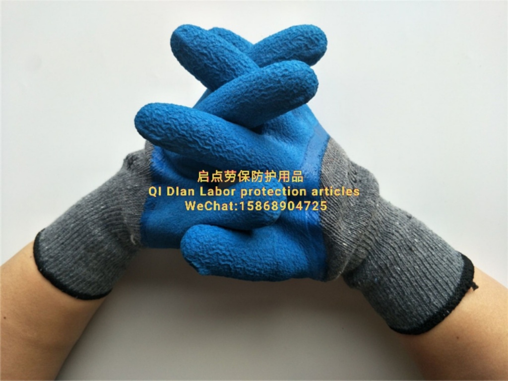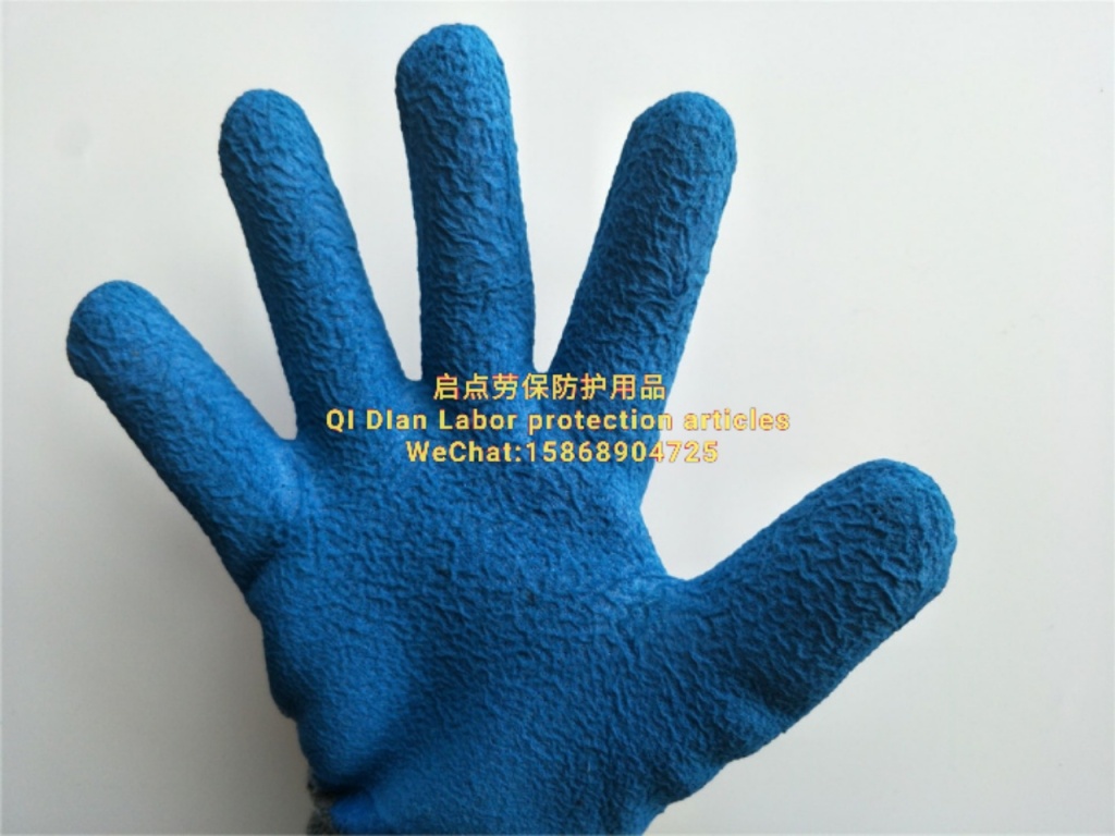 厂家直销十针灰纱蓝胶发泡半挂浸胶劳保手套柔软舒适透气防滑手套