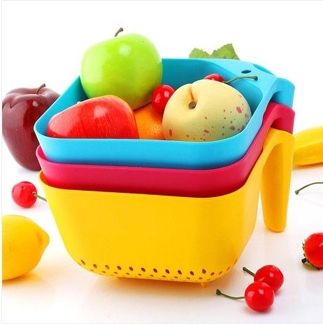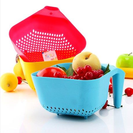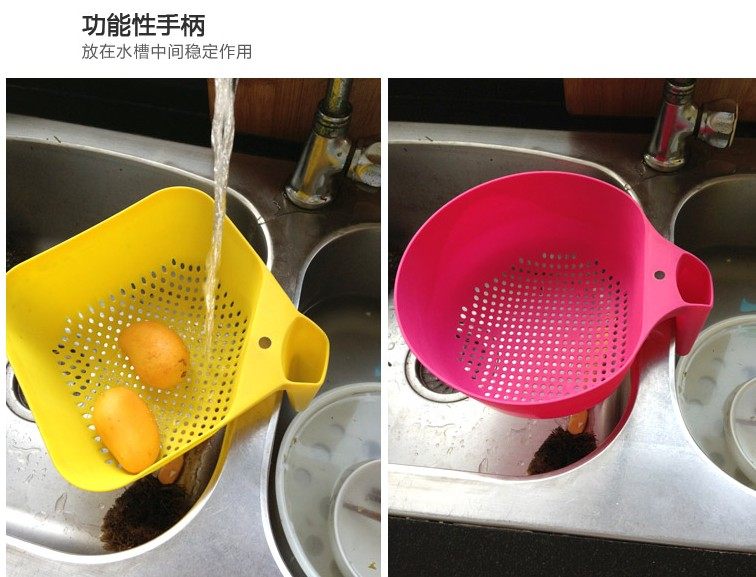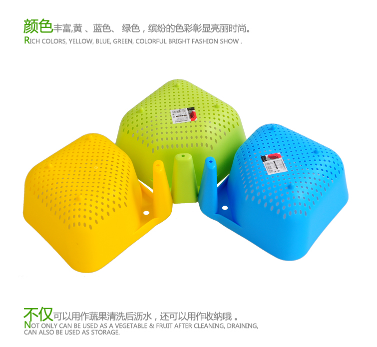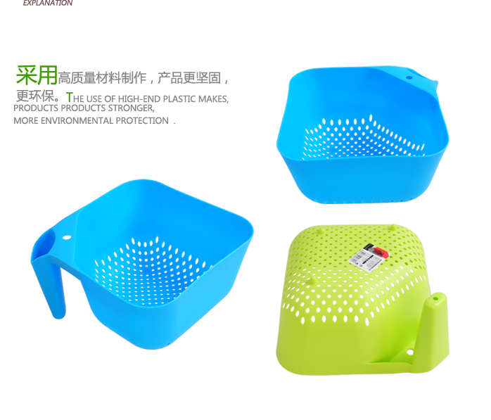 A高档塑料有柄洗菜篮 蔬菜水果蓝 沥水篮 厨房用品 投诉