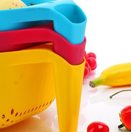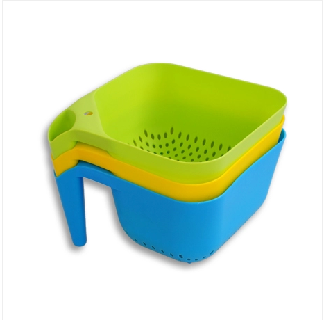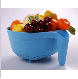 A高档塑料有柄洗菜篮 蔬菜水果蓝 沥水篮 厨房用品