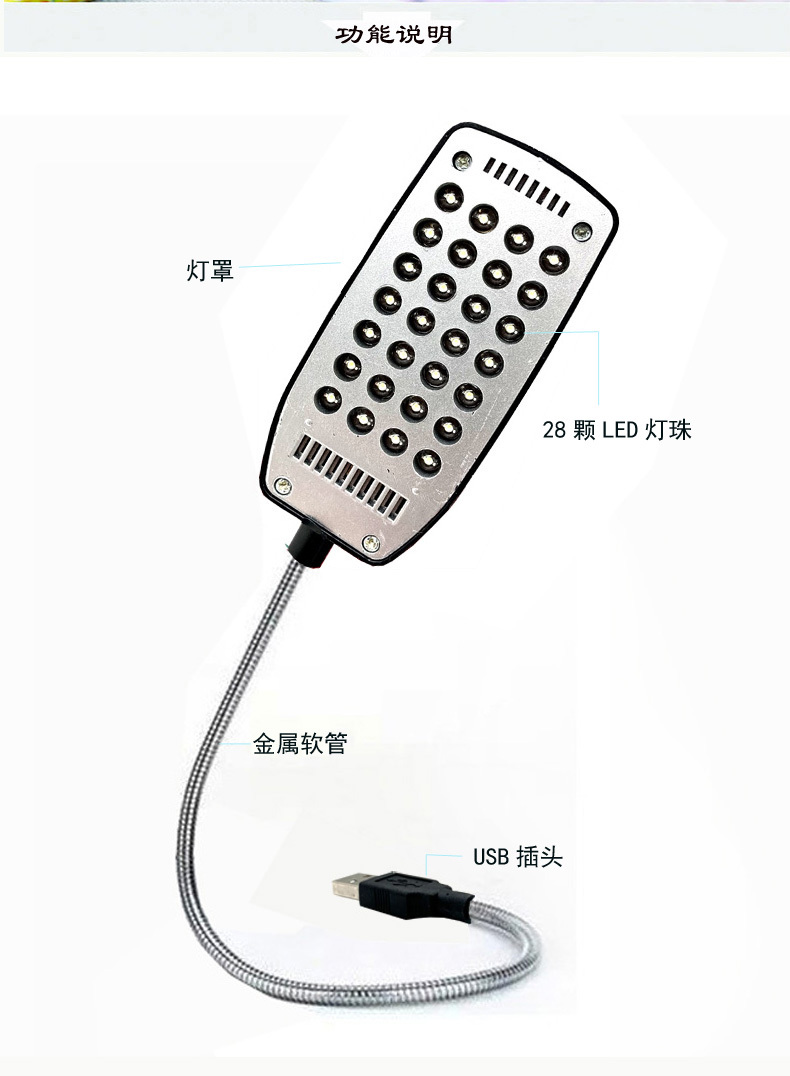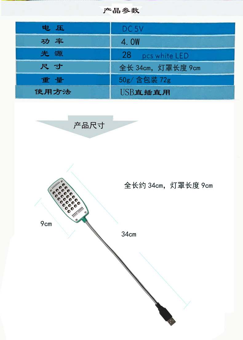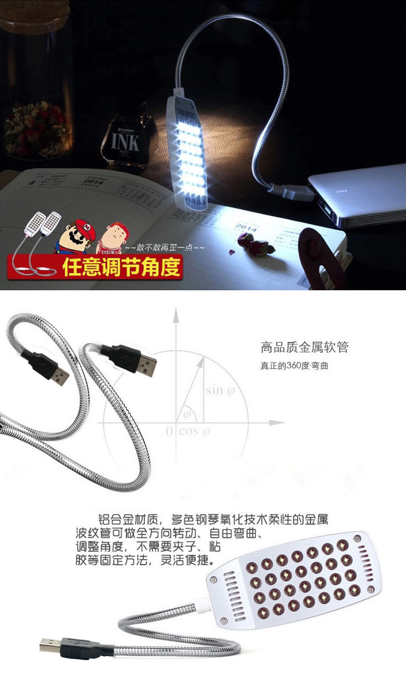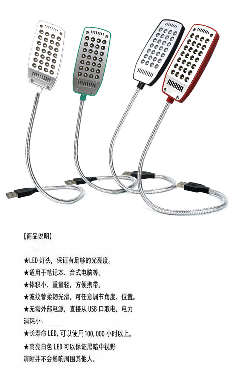 可以配合移动电源、USB适配器使用,方便携带。