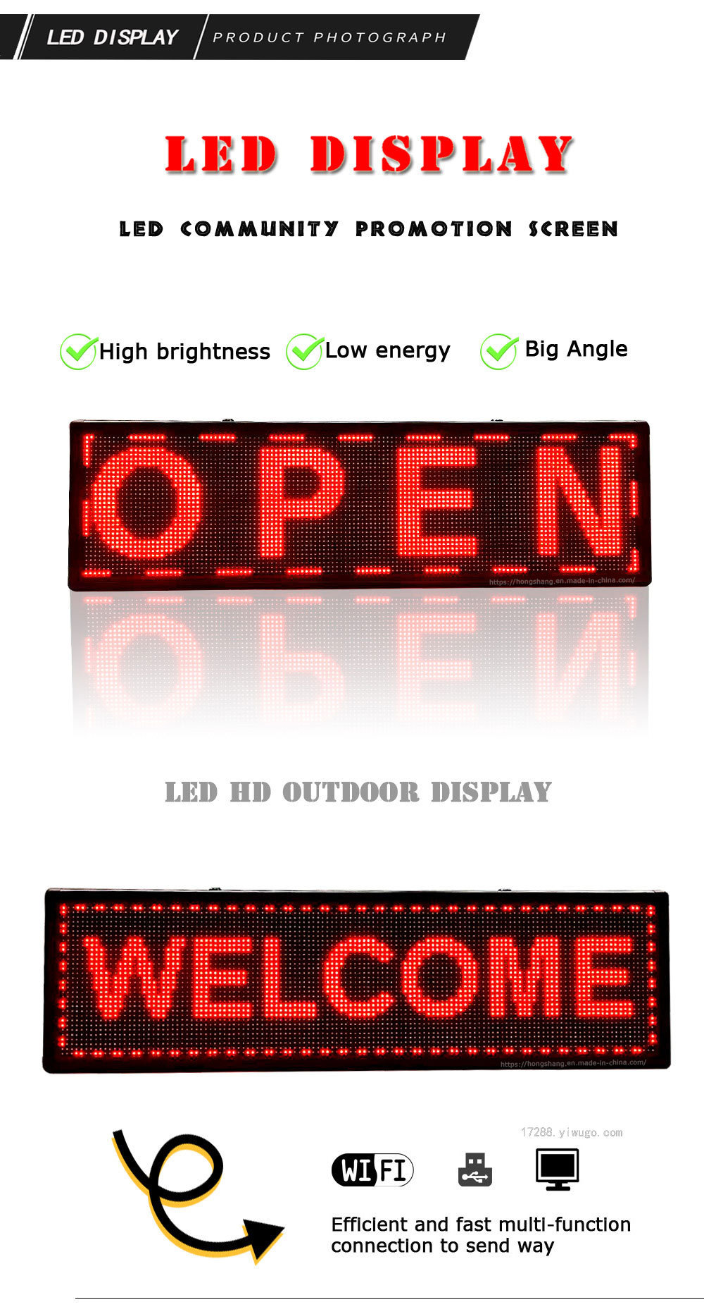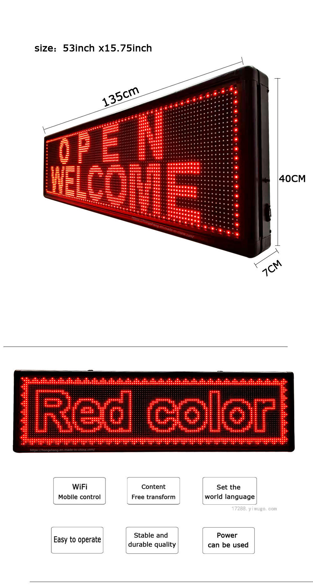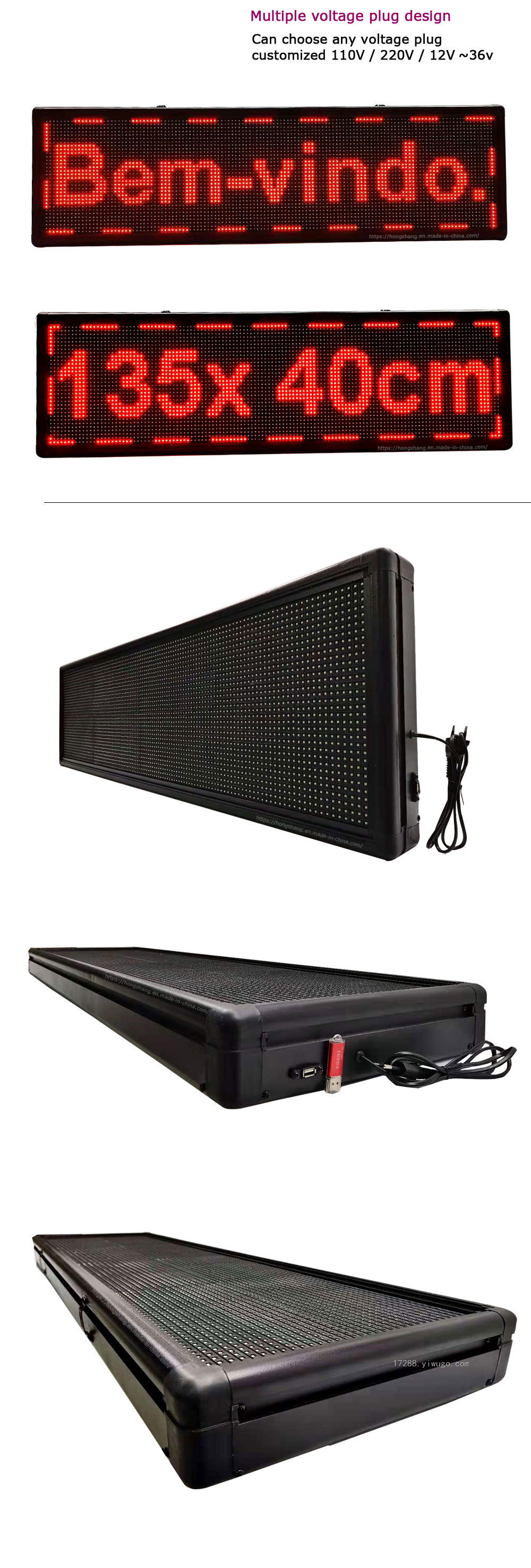 1. 展示能力:各种语言、文字、数字和符号。文字信息的字体大小可以调整,滚动速度可以调整,显示的亮度可以调整。