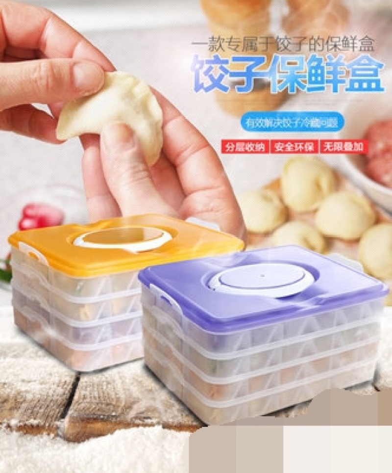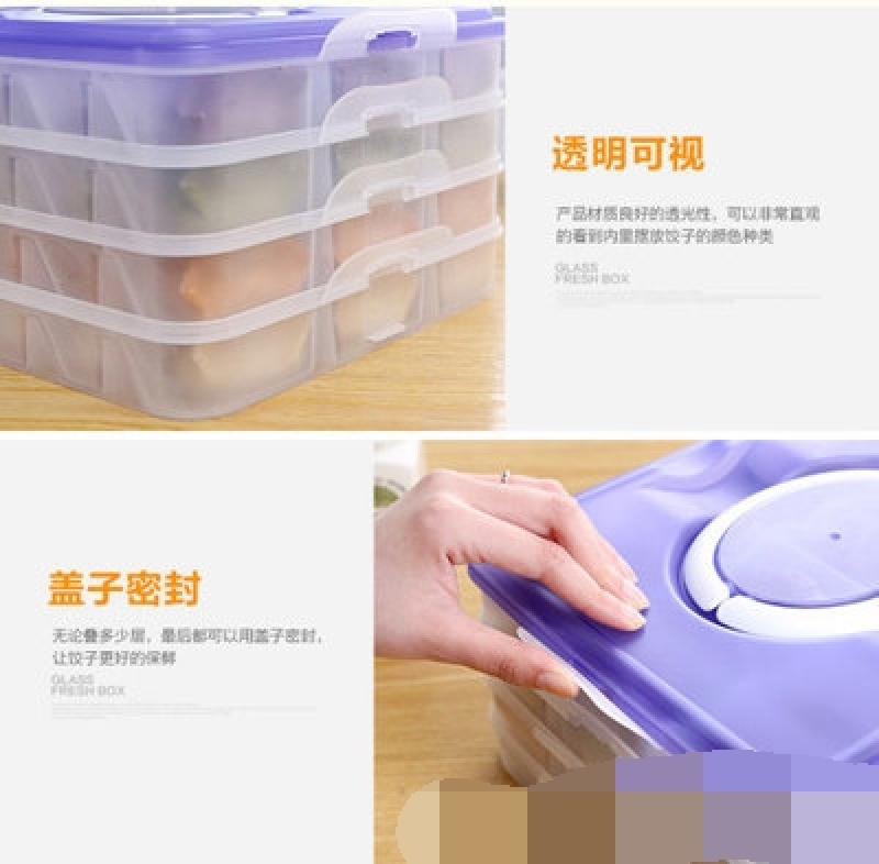 超大速冻塑料手提饺子盒冰箱保鲜盒微波炉收纳盒分格馄饨收纳托盘 投诉