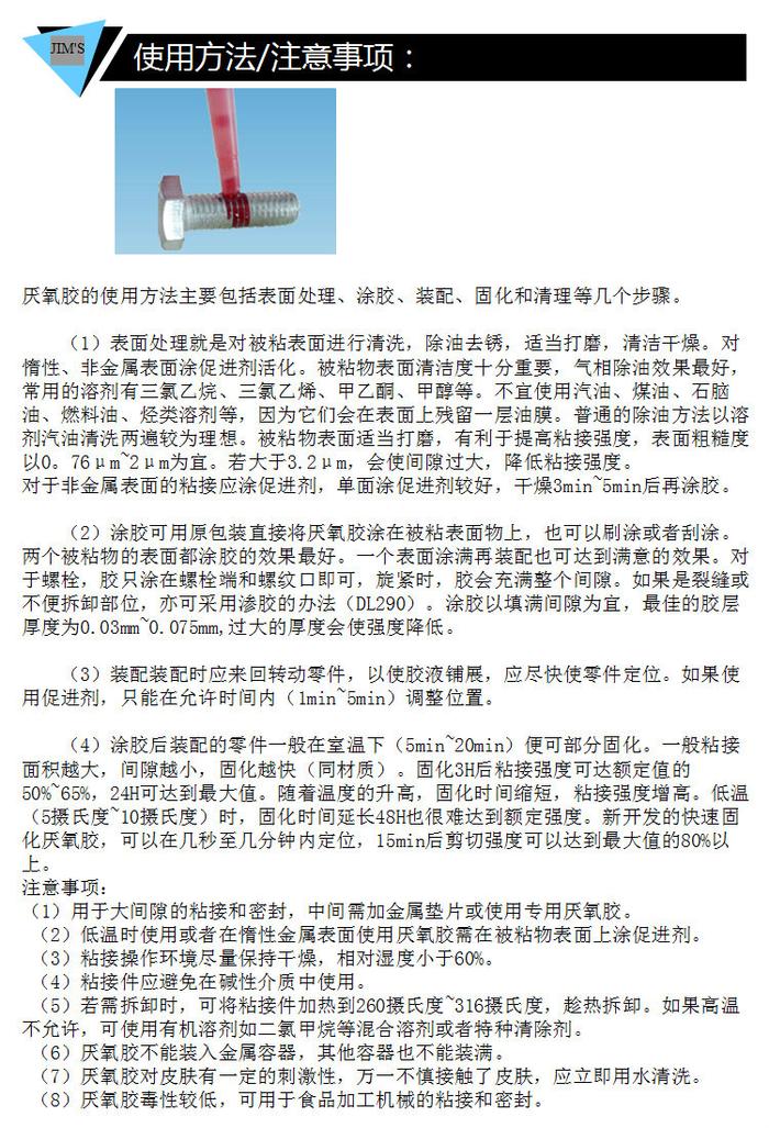 厌氧型螺丝锁固,密封;规格:10ml,50ml,250ml,1L