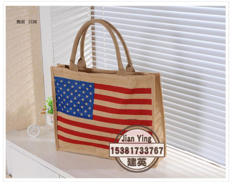 大号国旗图案麻布袋礼品包 时尚环保购物袋手提包学院女包
