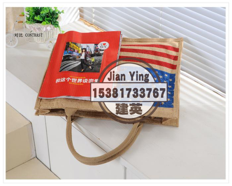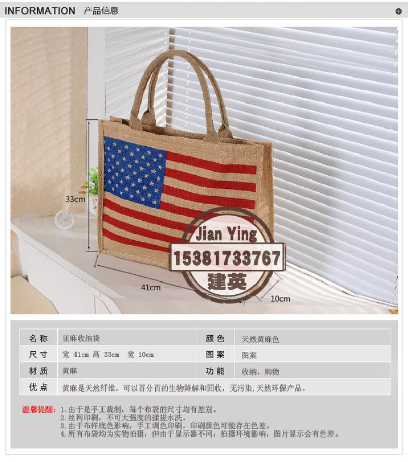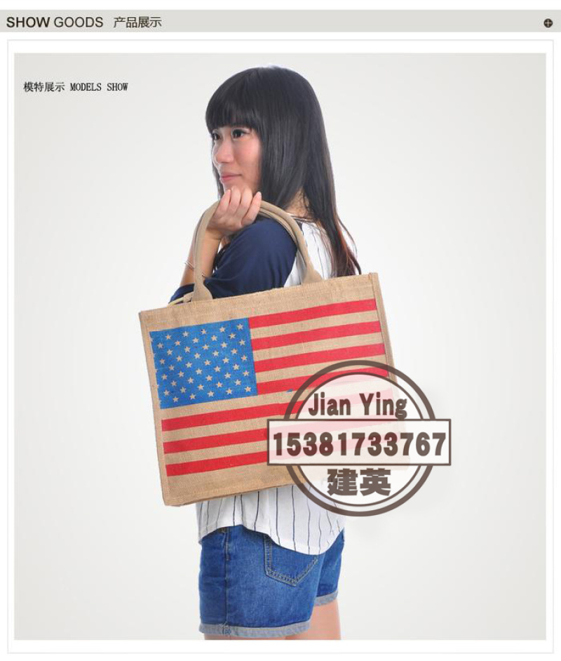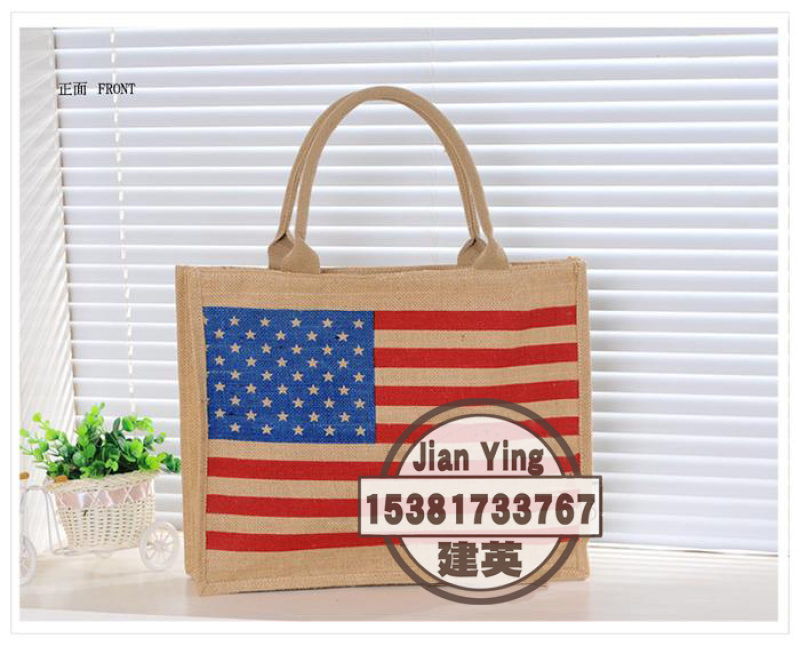 大号国旗图案麻布袋礼品包 时尚环保购物袋手提包学院女包 投诉