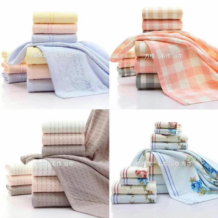 • 毛巾,方巾,童巾,,布艺毛巾,宾馆,酒店,足浴,桑拿,美容,美发,专用毛巾,干发巾,广告礼品毛巾,,精品套装浴巾 款式多本店支持现货混批,库存处理 国内量大包邮,进店选购,更多惊喜等着你