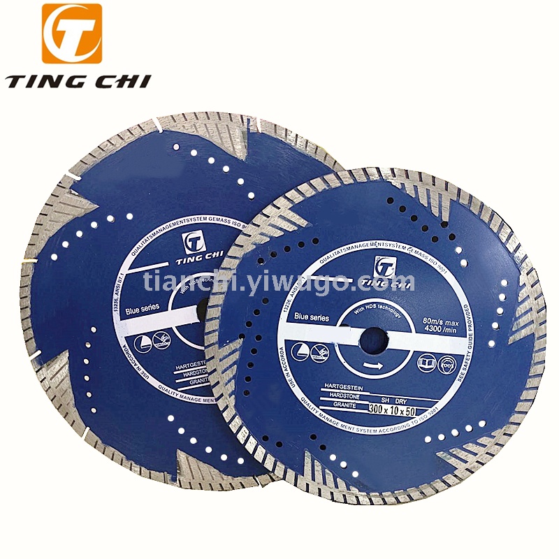 金刚石波纹型锯片:结合了金刚石干片(刀头型)和金刚石湿片(连续边缘锯片)两项的优势,锯齿连续呈现涡轮状均匀凸凹,提高了切割速度,增加使用寿命。