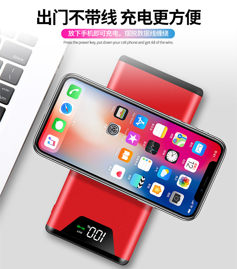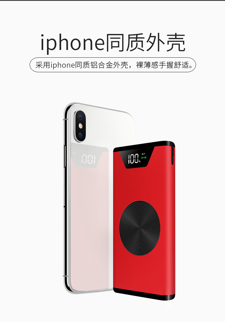 【品 名】:新款QI无线充电宝 便捷手机充电器 【型号】:TS-540 【输入】:DC5V/2A 【有线输出】:DC5V/2.1A QI:5V/2.1A(5W) 【实际容量】:10000mAh 【材质】:塑料ABS 【产品尺寸】:155*74*15mm 【包装尺寸】:190*110*35mm(飞机盒) 【重量】:产品(220g)+包装(54g) 【装箱规格】:40*37*23CM(16KG/50台) 【颜色】: 黑色 红色、粉色、金色