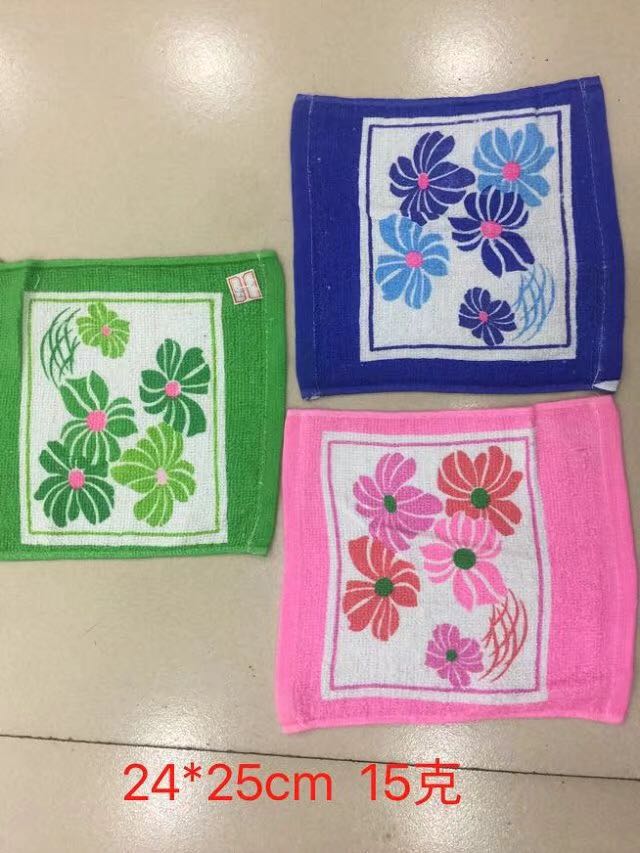 素色提花牡丹方巾   颜色多  25*25   12条1打   6000条1件   颜色混装   也可清装   可以根据客人要求包装   价格面议