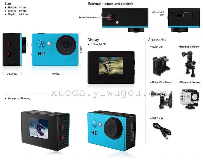 高清720p 迷你潜水运动相机 户外运动数码防水摄像机