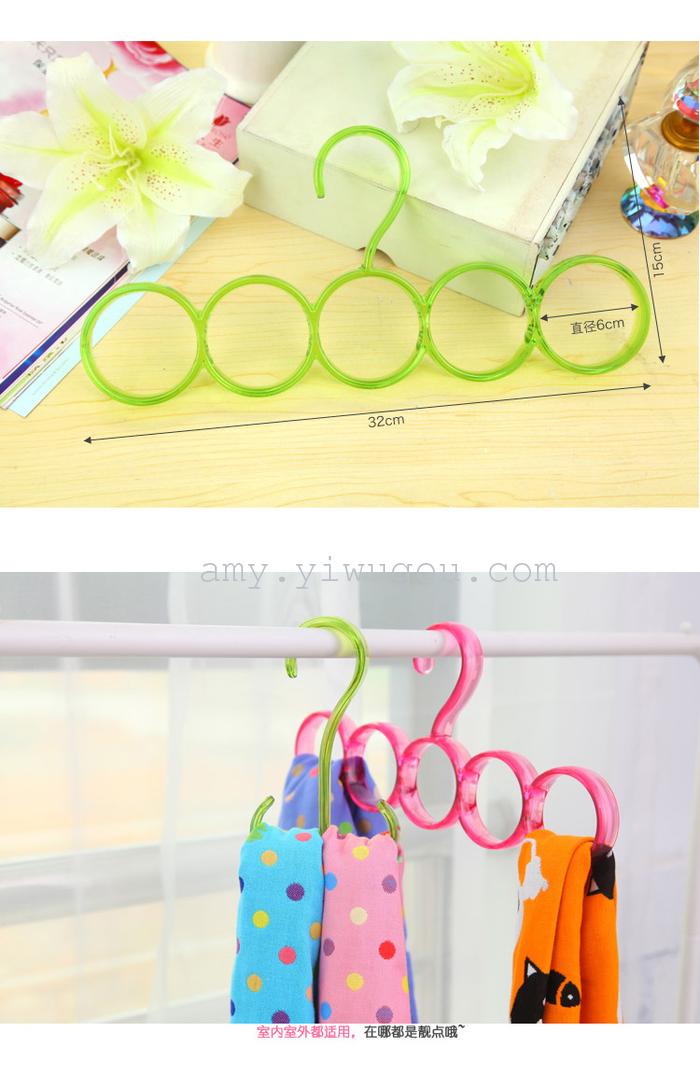 6环多功能糖果色圈圈衣架围巾领带架双钩晾鞋架挂架 围巾衣架