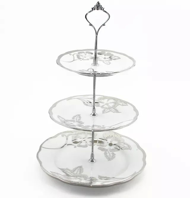陶瓷串盘三件套 尺寸为大盘9寸,中盘7寸,小盘6寸。花样图案多种,金色,银色两种。可以放水果和糖果 家居用品首选。