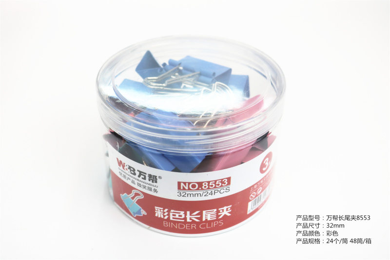 万帮 日韩文具 8553型 彩色长尾票夹32mm 文具夹子批发