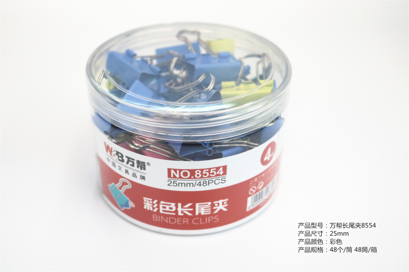 | WB-8554 | 25mm长尾夹 | 40X30X27 | 48个×48筒 | 2304 | 10kg |