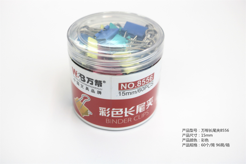 万帮8556型彩色长尾票夹15mm