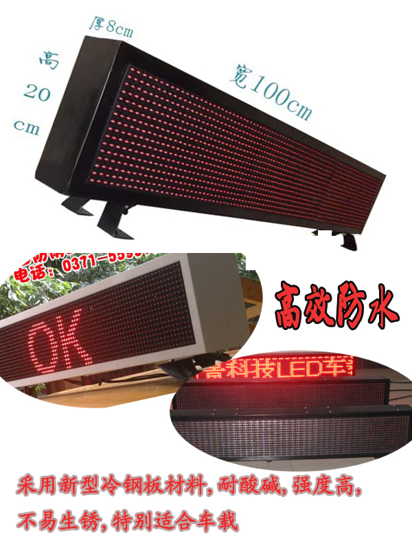 LED 车载防水屏 显示屏  车载屏车顶双面LED车载屏,足功率LED车载电源,带接反保护,带过载保护,拉杆安装方式,不伤车顶,不用打孔,外接电源线为1.5国标纯铜防晒防雨,