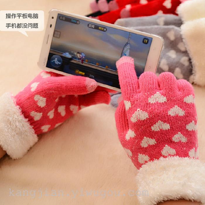 爆款触屏手套 羽毛口爱心触控手套