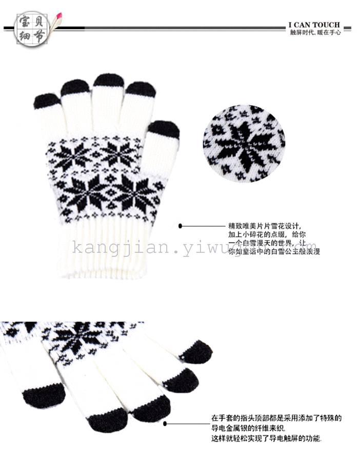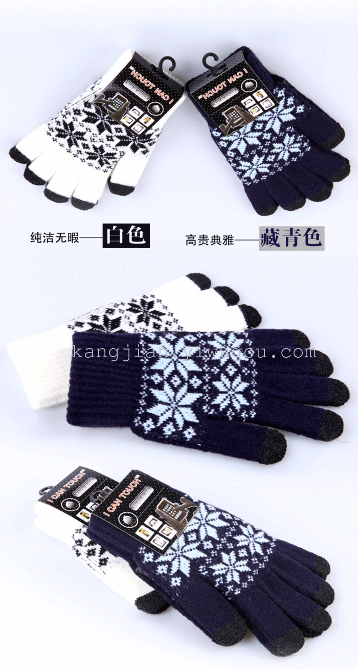 三指四个雪花触屏手套五指提花触控手套 English | 投诉