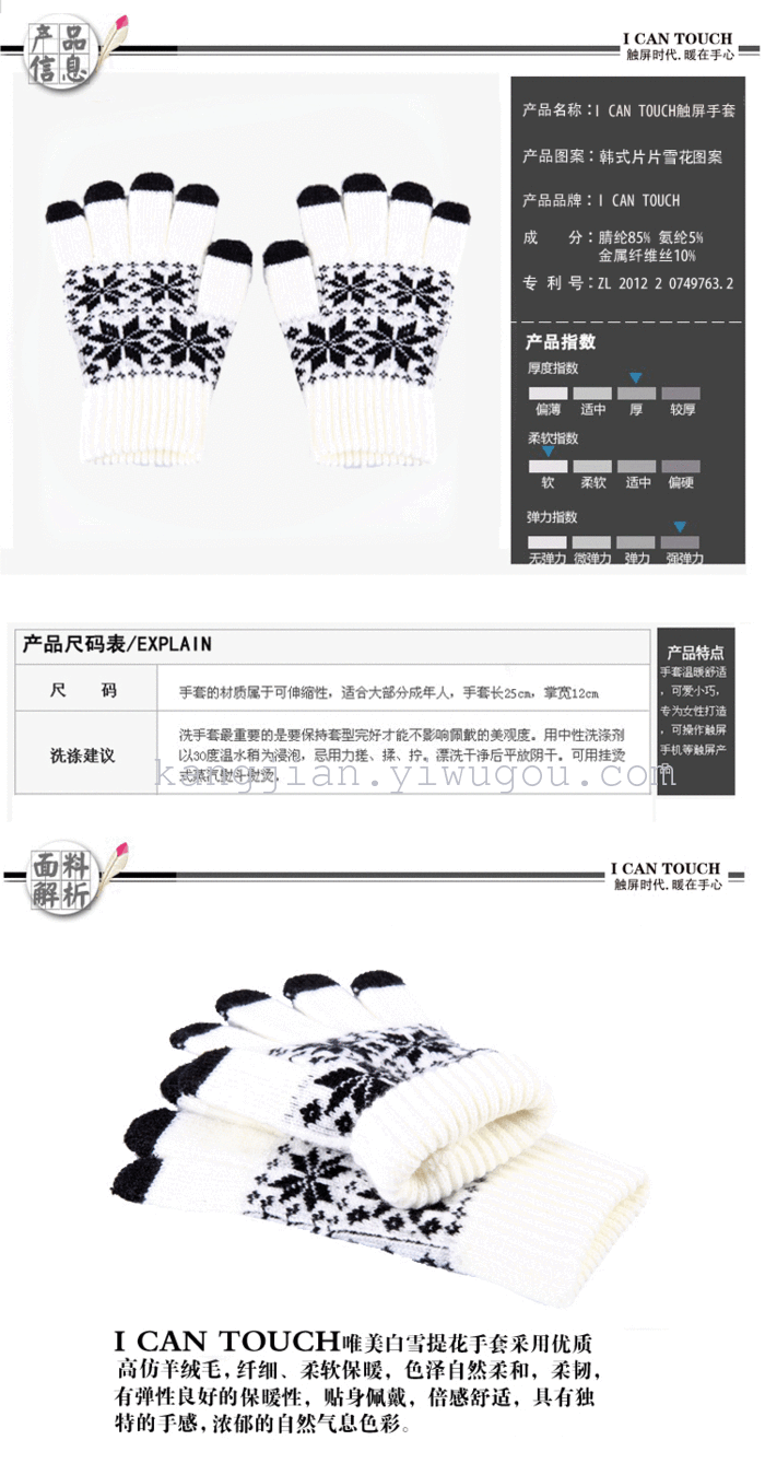 • 触屏手套为季节性商品!实体店与义乌购同步销售,现在是实体店销售旺季,库存数量盘点滞后;为避免拍下商品无法及时发货,请亲们、老板们在拍下商品前先与客服联系。