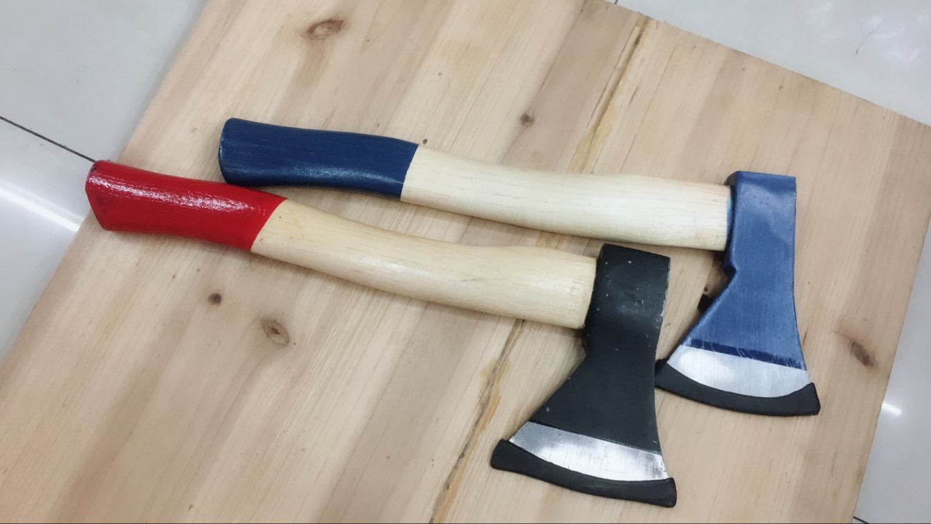 此款斧头是精品45#碳钢锻打,刃口高频淬火处理。