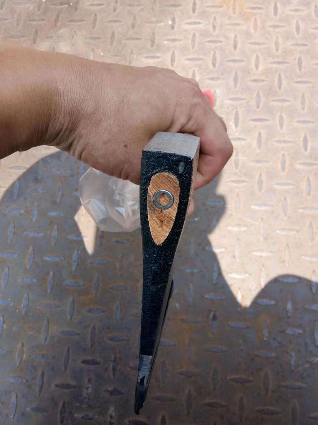 斧头顶端使用嵌入式打钉加固处理, 比普通树脂胶更牢固,不容易脱落。更美观。