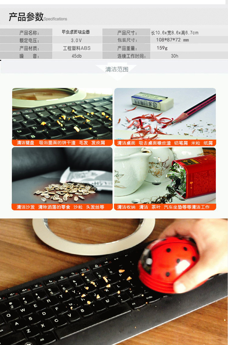产品名称:瓢虫桌面吸尘器