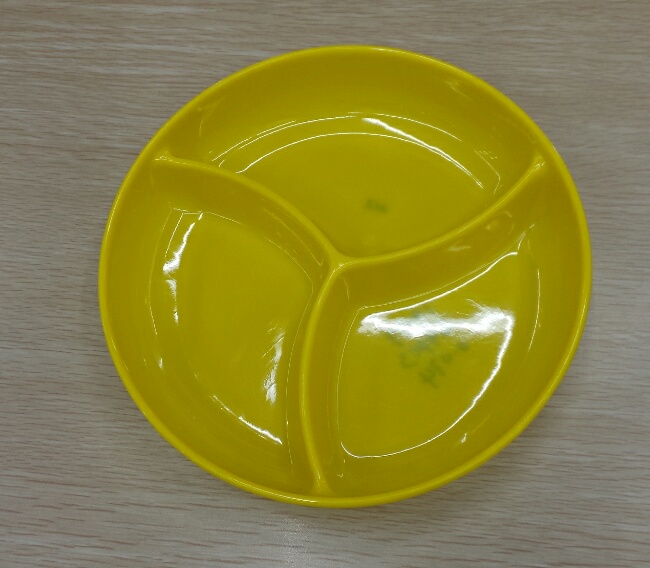 彩色密胺三格果盘185克,三到四个颜色混。一箱84装 体积0.074.