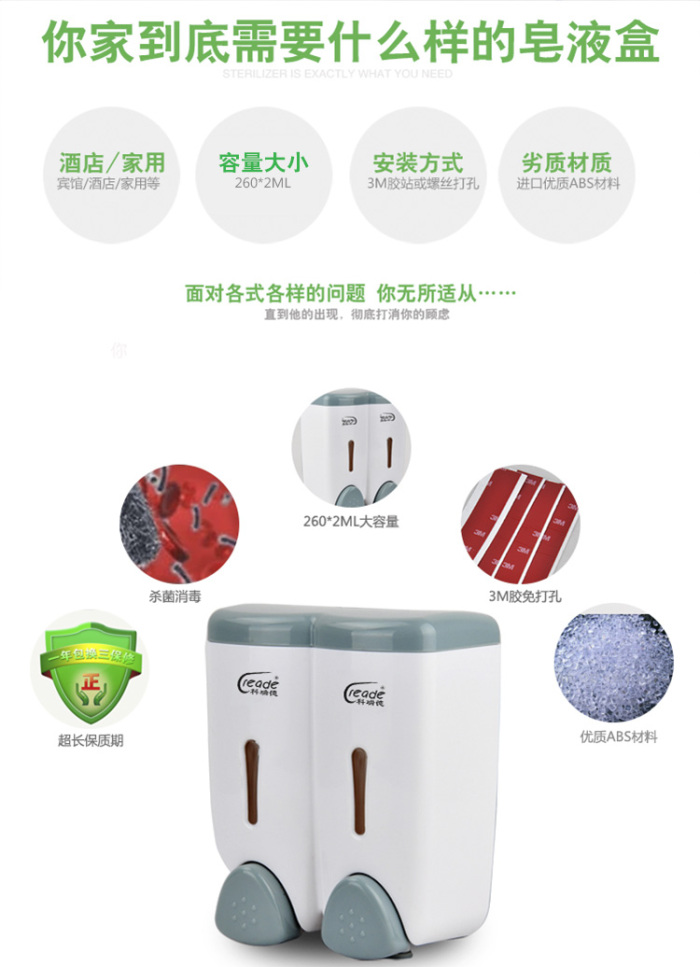 浴室洗手液瓶双头皂液盒酒店壁挂式皂液器洗手液盒洗手液器 投诉