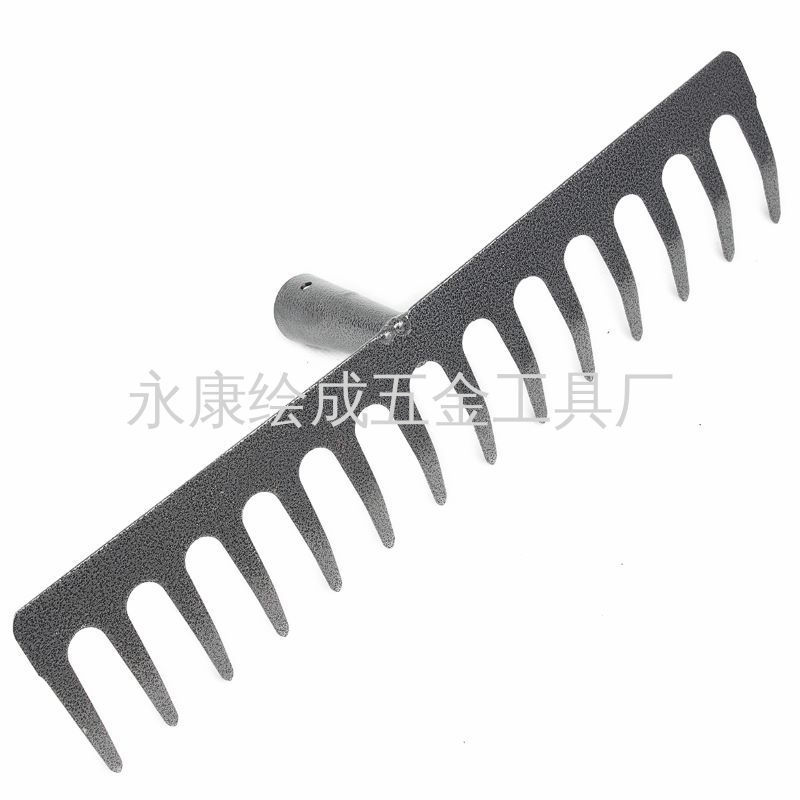 永康绘成五金工具厂义乌直销处   本厂专业生产园林草耙  钉耙  耙头  园林耙头  农用耙  柄焊接   14齿   喷塑 产品的厚度  重量   齿数  可按客户需求定做