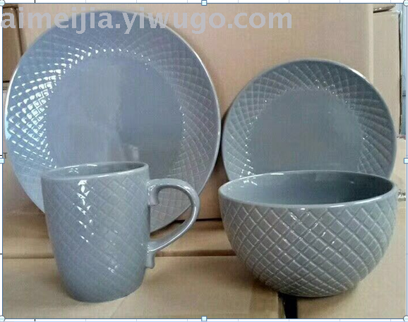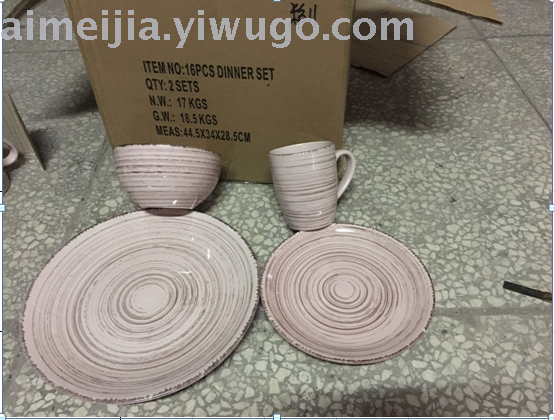 16头螺纹色釉陶瓷餐具 礼品赠送 厂家直销 外贸原单 低价批发 投诉