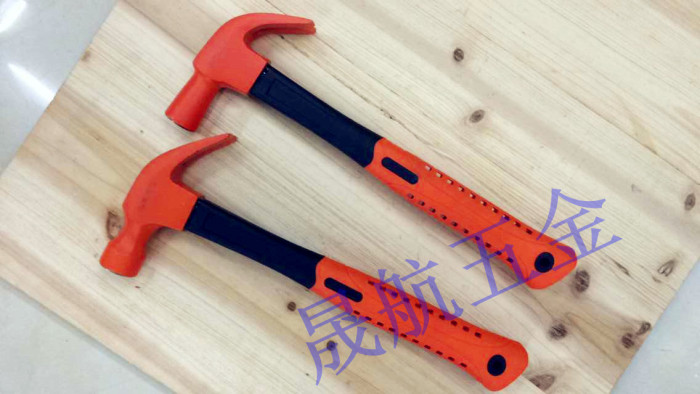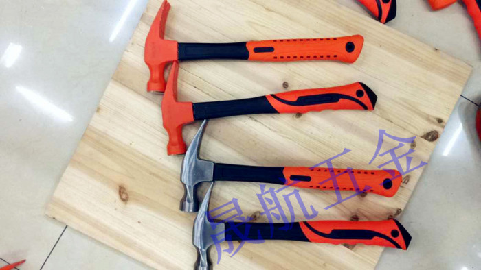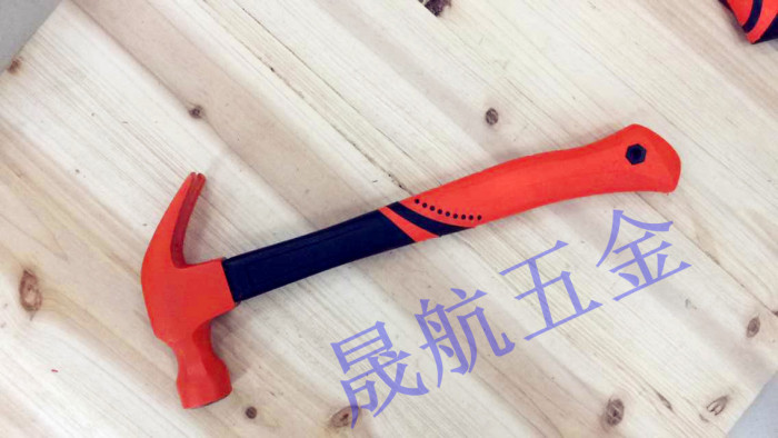 圆颈羊角,45#钢锻造毛坯,锤头淬火HRC48-52之间,羊角淬火HRC38-42之间,砂轮粗磨后喷塑,手柄为内部70%玻璃纤维,外面PP+TPR材料,比PVC手柄更舒服