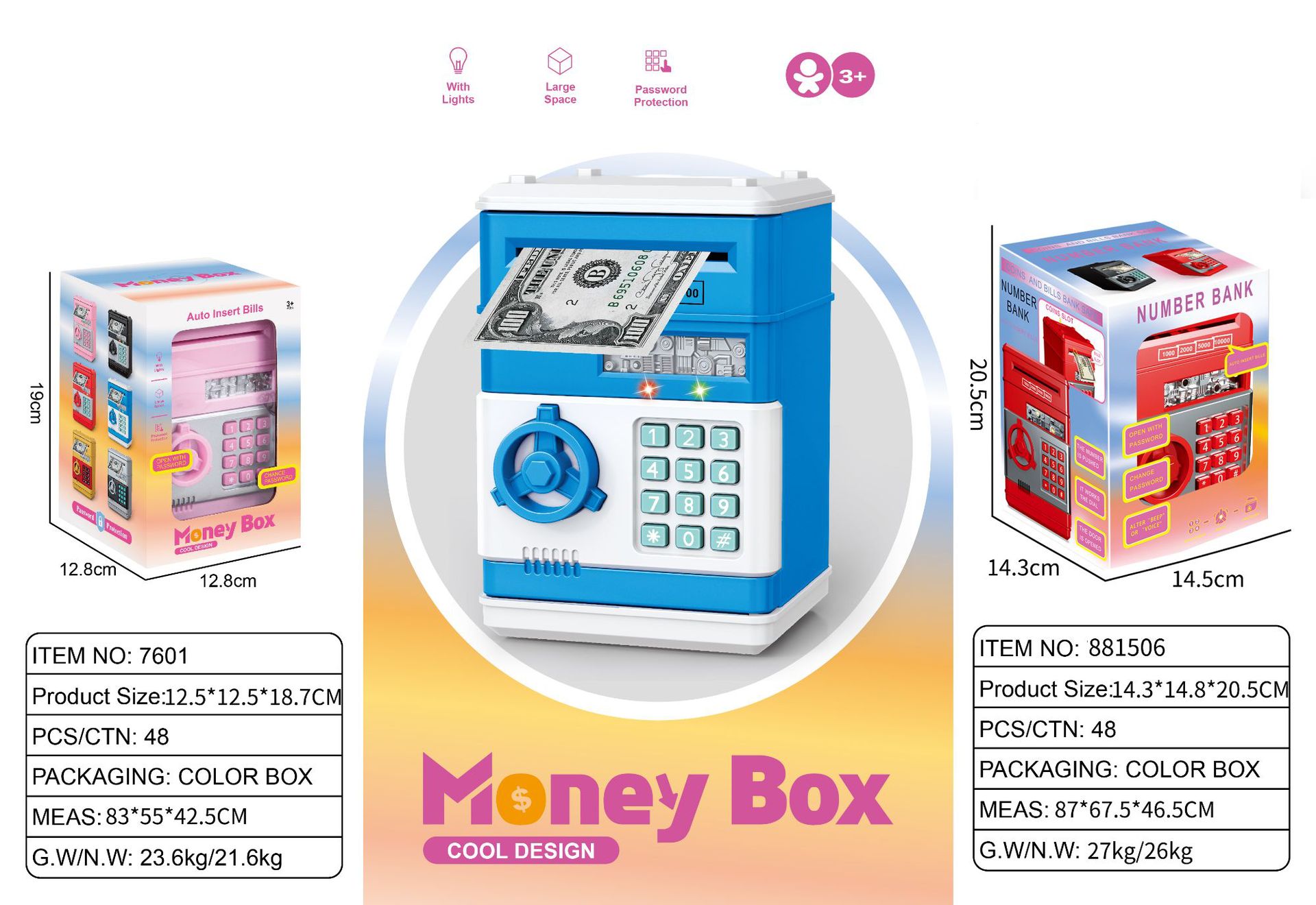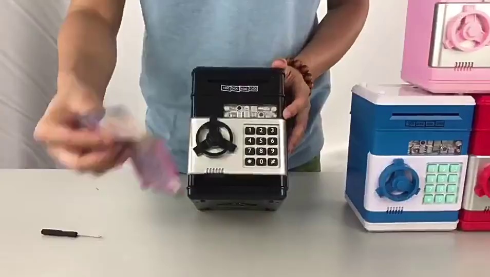 ● 商品材质:ABS ● 商品尺寸:19×13.5×13cm●包装盒:20.5*14.5*14.5CM ●我自己的保险柜”守卫自己的东西。 看似玩具,似则为理财小金库。自带密码,语音,除了存钱,还能建立存钱目标,规划理财。