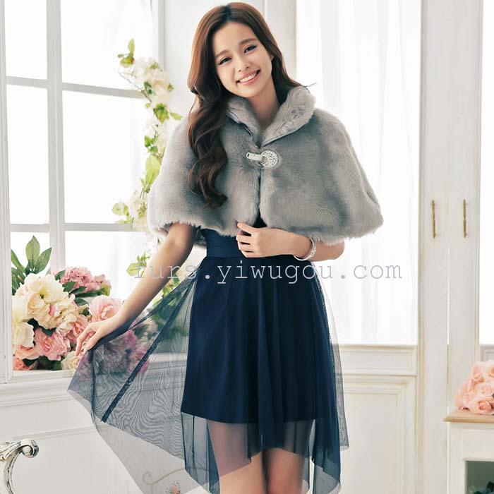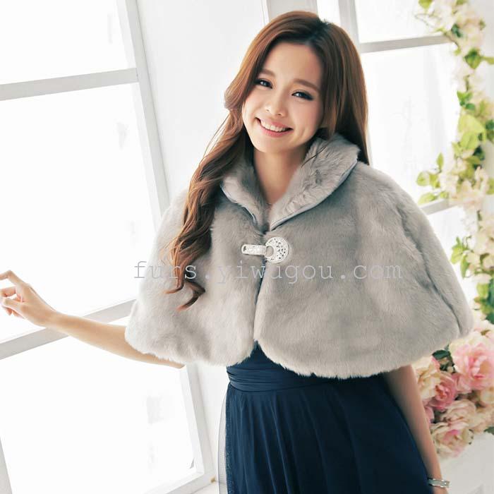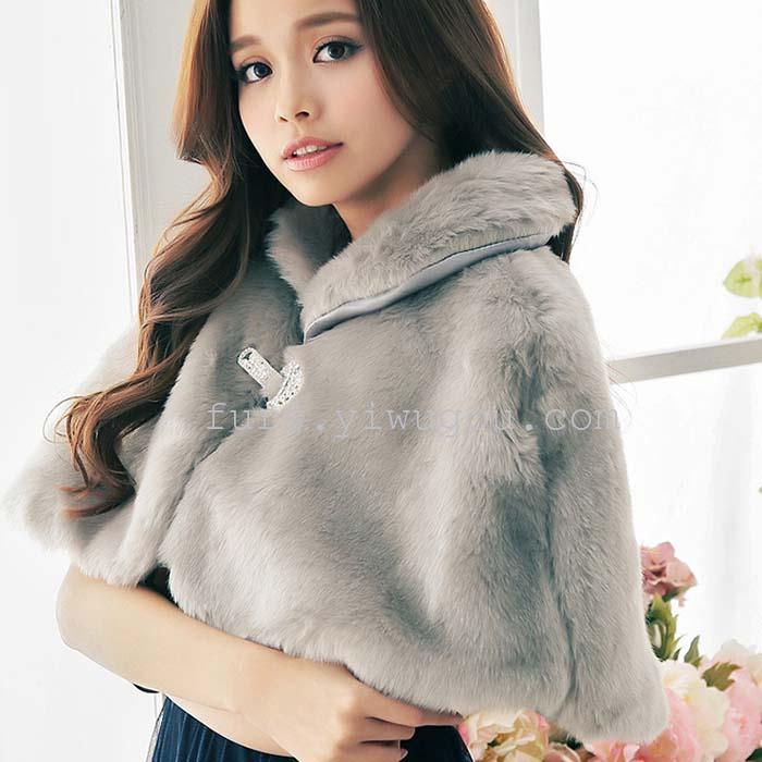 灰色兔毛披肩 裘皮大斗篷披肩 皮草外套衣服 时尚女士外套 English | 投诉