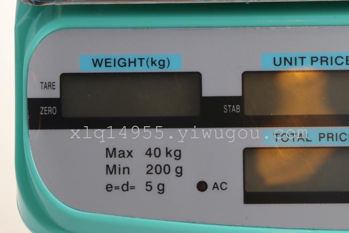 1.红字数码LED显示 防冻 适合室内使用 功能:去皮,累计,储存,置零,7个单价可以设定,开机自动回零等功能 驱动:蓄电瓶、交直流两用,超长待机时间1-2个月。实际使用情况看个人频率,一般推荐半个月充一次电延长电瓶使用寿命0V交流电,电瓶可以反复充电使用)