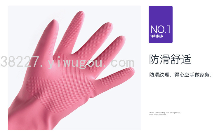 本产品采用天然、优质的橡胶原料经过特殊工艺加工制成,具有弹性好、柔韧、经久耐用、不易撕裂,是符合日常家用洗涤护手保暖的新型洗碗手套,洗衣服手套。