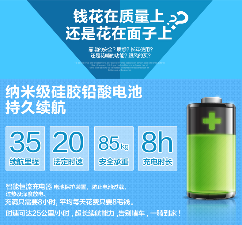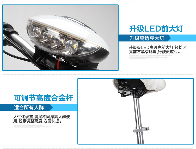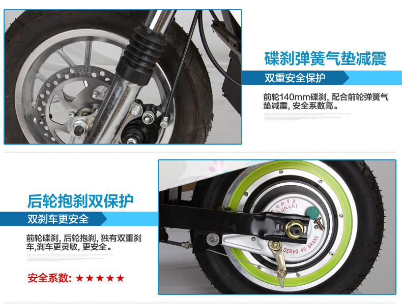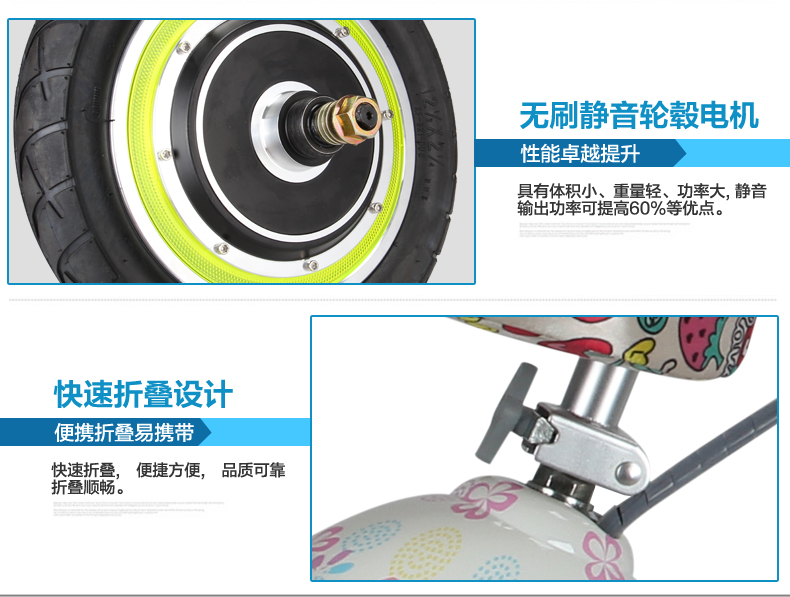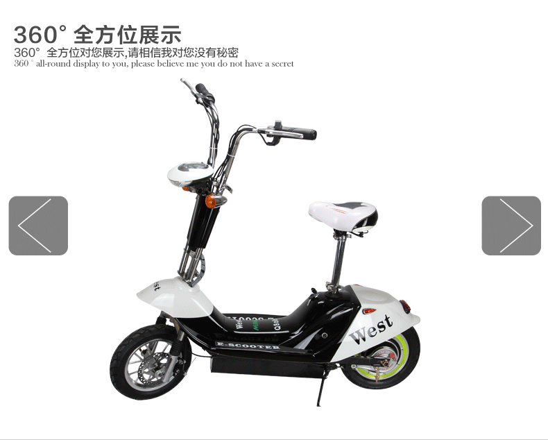 注意 电机: 250W(尤奈特电机,电机后置车轮里面,电机无声音,质量好,价格高)