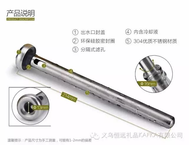品名:不锈钢啤酒棒/冰酒棒/啤酒伴侣