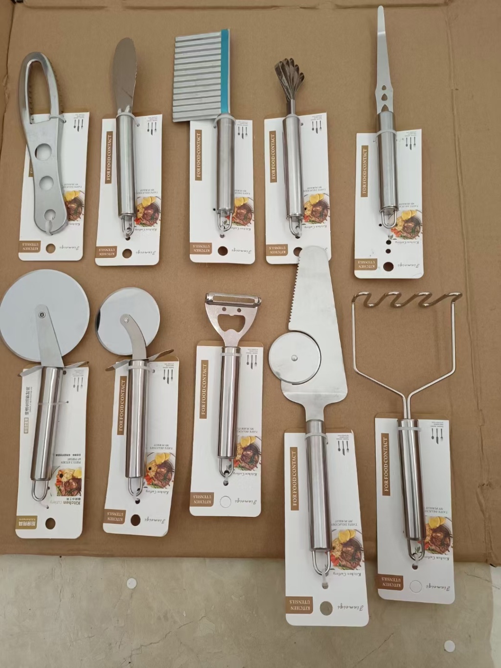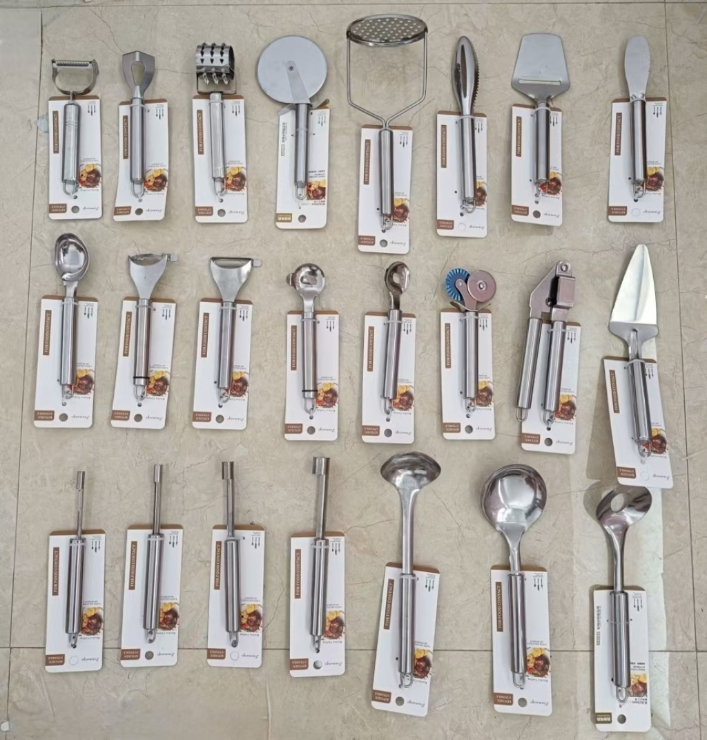 • 主营TV产品,厨房用品,日用百货,户外烧烤架,食品夹,蛋糕工具,过滤网,西餐刀具,剪刀,尼龙餐具,多功能开瓶器,硅胶刷子,奶油刮刀.亚克力化妆盒收纳展示盒,调料罐。欢迎广大采购商前来咨询洽谈