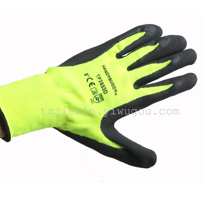 名称:尼龙乳胶发泡手套 颜色:荧光绿