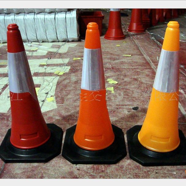 材料:椎体PE、底座橡胶。由高质量的颜料和抗紫外线的添加物混合而成。