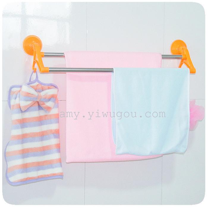 CH603吸盘毛巾架 卫生间不锈钢双杆毛巾杆 无痕吸盘置物架