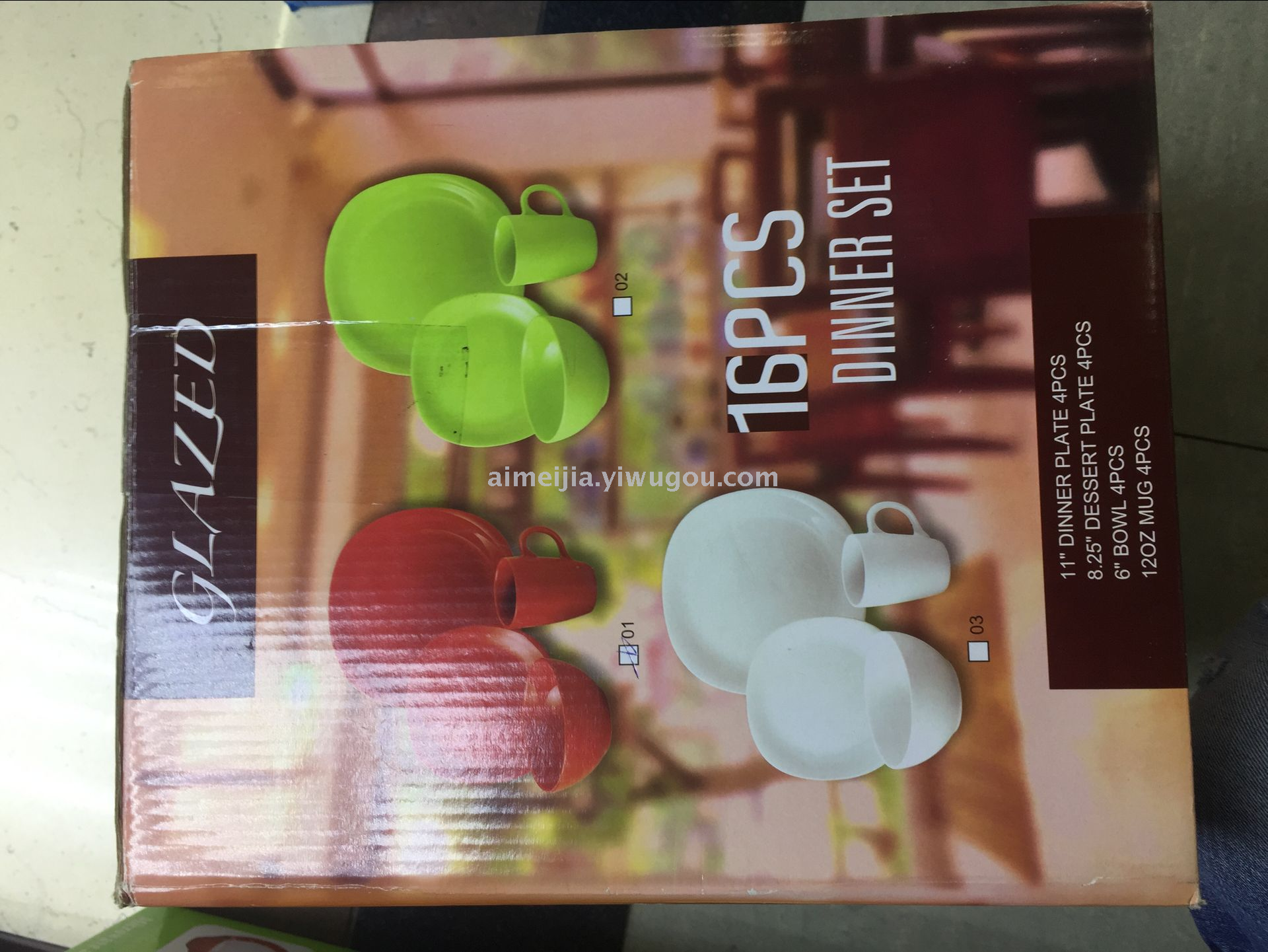 16头陶瓷餐具,每个款式有4个,可4人共餐。有现货,可来样定做