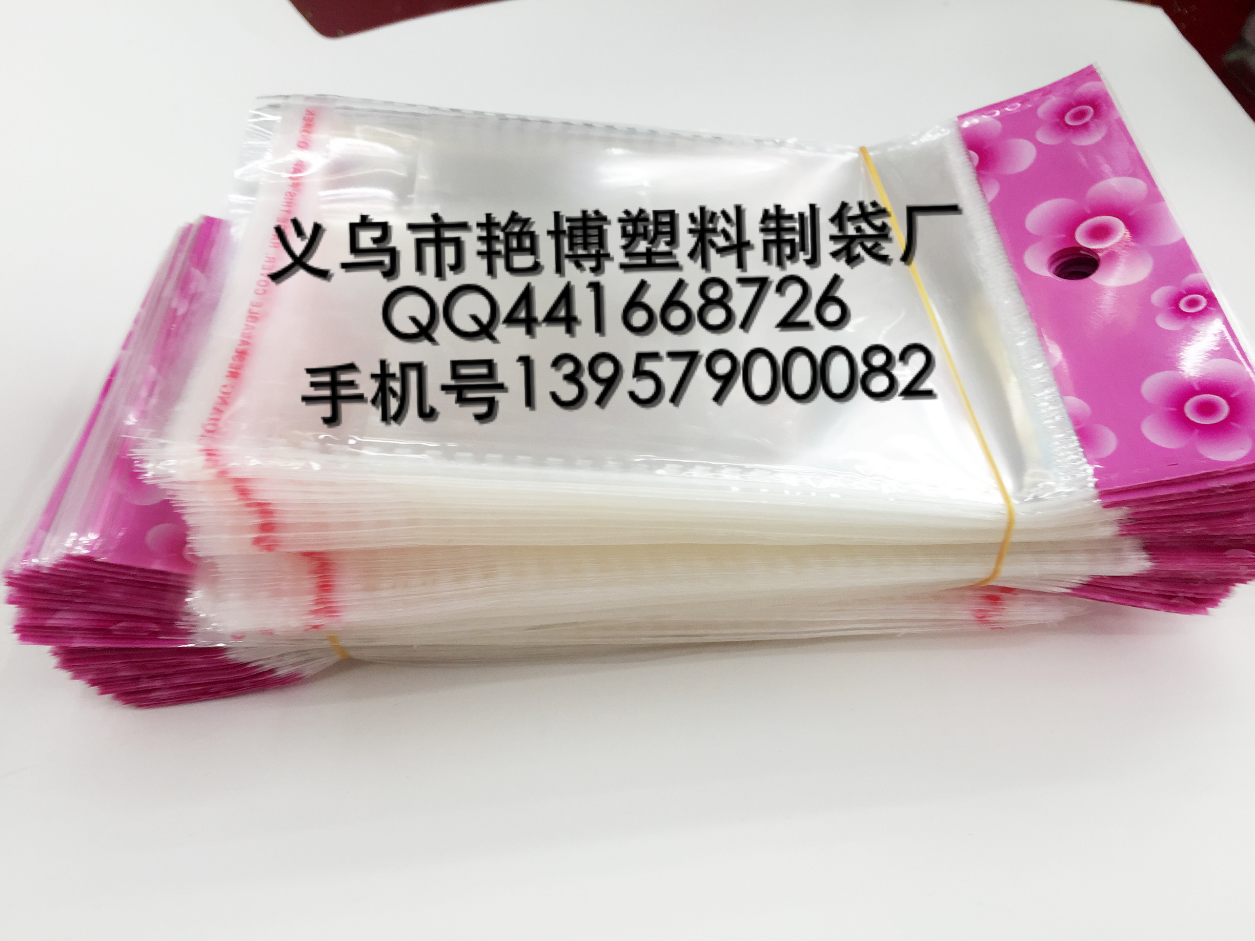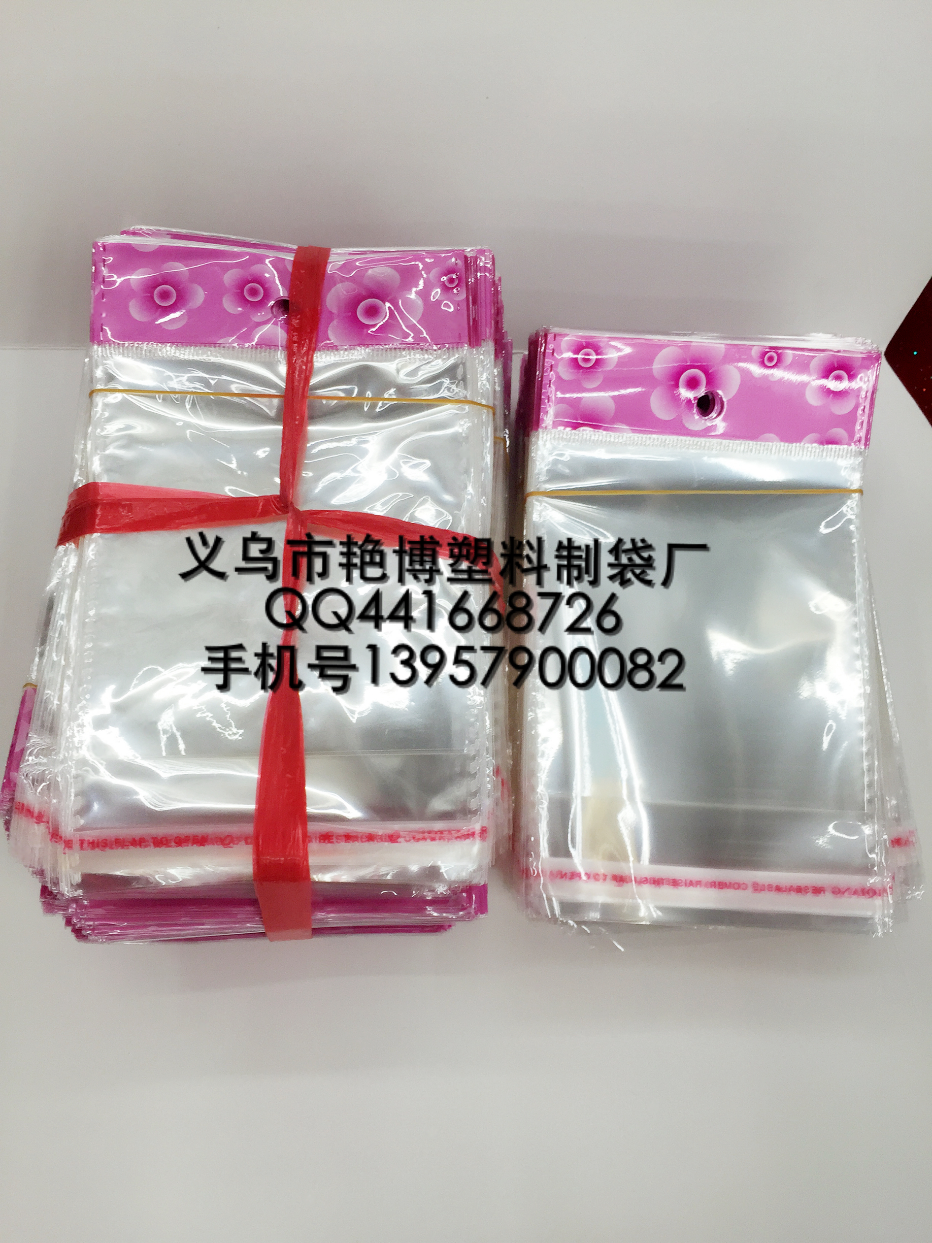 1、光亮、高透明,质量非常好的带不干胶的包装袋。