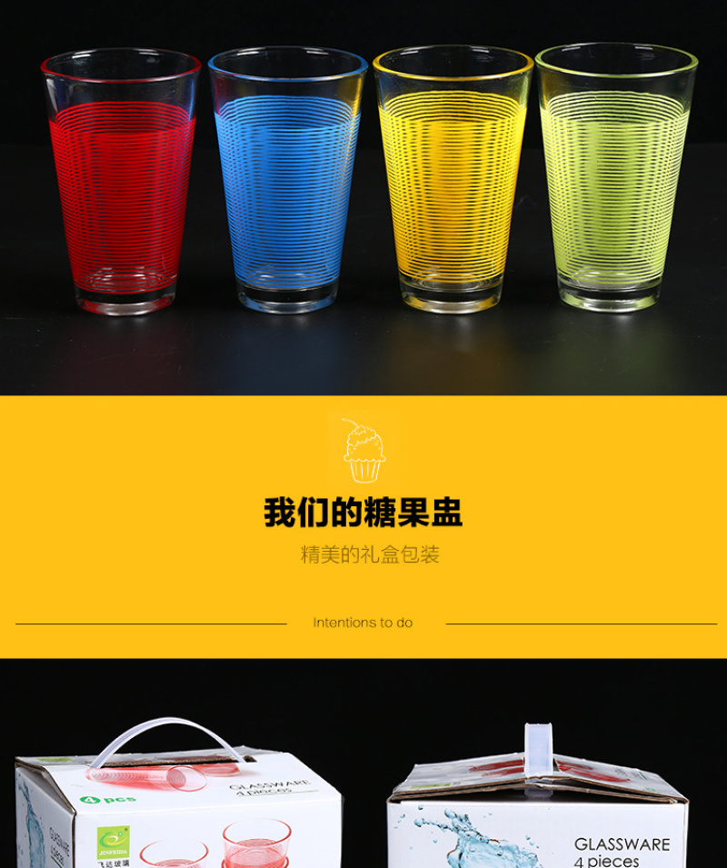 品名:飞达4PC多彩杯 材质:玻璃 颜色:如下图