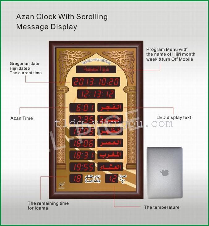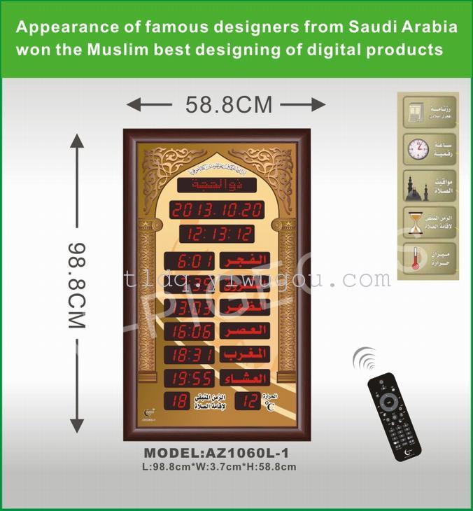 1、邦克钟是自动显示100年日历/伊斯兰日历,月份,星期,时间