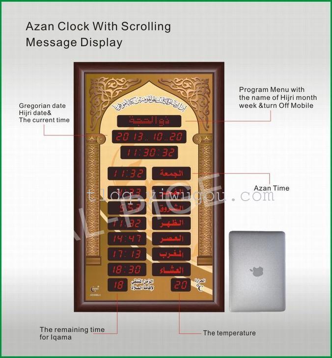 1、邦克钟是自动显示100年日历/伊斯兰日历,月份,星期,时间