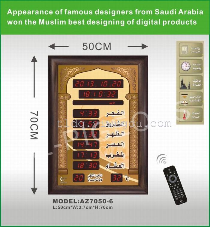 1、邦克钟是自动显示100年日历/伊斯兰日历,月份,星期,时间