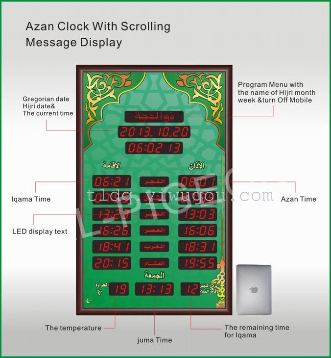1、邦克钟是自动显示100年日历/伊斯兰日历,月份,星期,时间