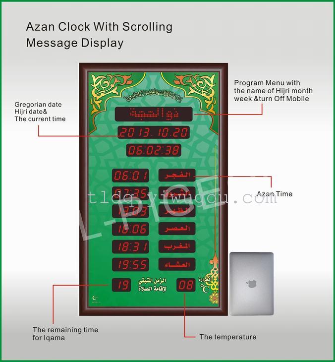1、邦克钟是自动显示100年日历/伊斯兰日历,月份,星期,时间