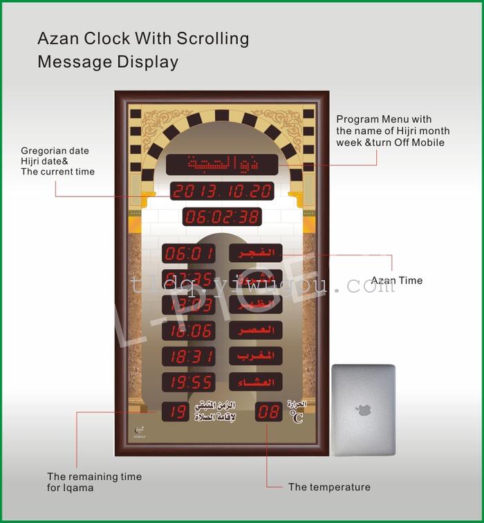 1、邦克钟是自动显示100年日历/伊斯兰日历,月份,星期,时间